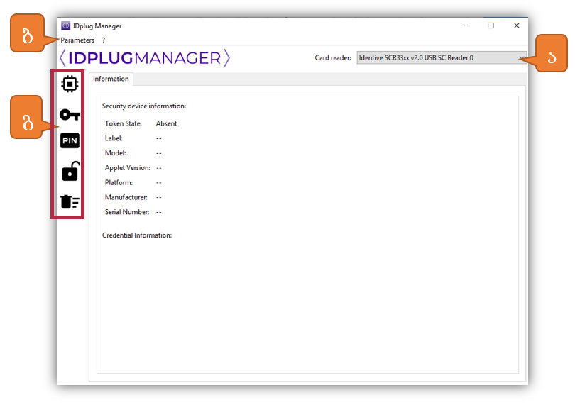 IDplug Manager პროგრამის საწყისი ფანჯარა შედგება: