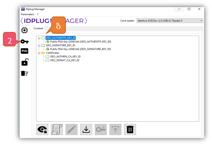ღილაკი (2) - ფანჯარა Content (ბ) საშუალებით შესაძლებელია  შტამპის ბარათის ავთენტიფიკაციისა და ხელმოწერის გასაღების შესახებ ინფორმაციის მიღება.