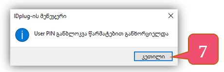 • მომდევნო ველში: [დადასტურება ახალი Signature PIN] განმეორებით ჩაწერეთ ახალი Signature PIN (5)
